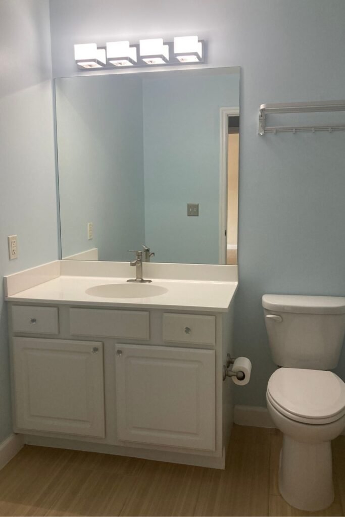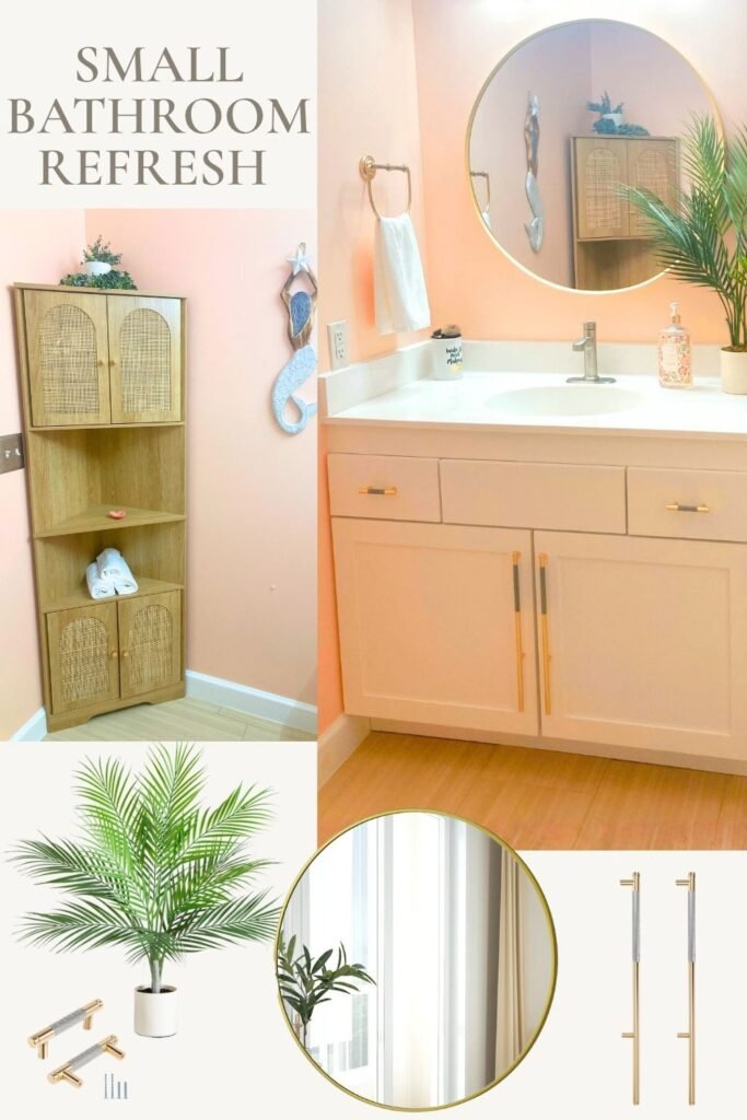 This small bathroom remodel is proof that you don’t need a full renovation to completely transform your space. We just did a refresh of the room for about $1200. With a few strategic updates, this once-dated bathroom now feels fresh and effortlessly coastal.